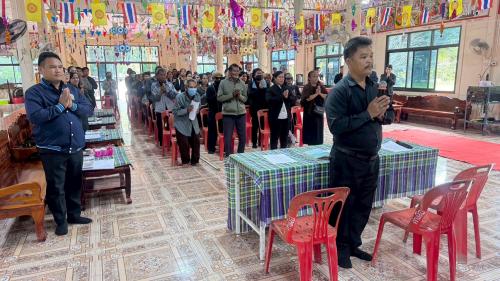 นางวรรณธณา พุฒิประภาส นักวิชาการพัฒนาชุมชนชำนาญการ รักษาราชการแทน พัฒนาการอำเภอขุขันธ์ พร้อมด้วยเจ้าหน้าที่พัฒนาชุมชนอำเภอขุขันธ์ จัดประชุมเตรียมความพร้อมการจัดกิจกรรม “พิธีเฉลิมฉลองเงินขวัญถุงพระราชทาน กองทุนแม่ของแผ่นดินบ้านคำเผือ หมู่ที่ 5 ตำบลโสน อำเภอขุขันธ์ จังหวัดศรีสะเกษ” เพื่อวางแผนรูปแบบการดำเนินงานให้เป็นไปอย่างสมพระเกียรติและถูกต้องตามแนวทางกองทุนแม่ของแผ่นดิน