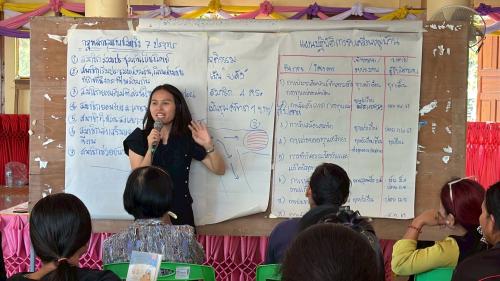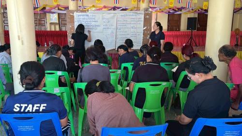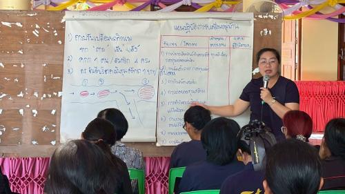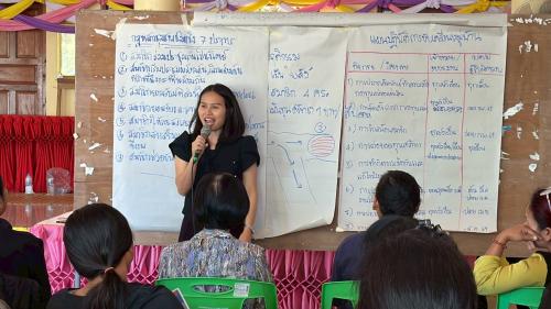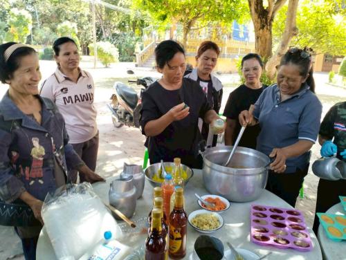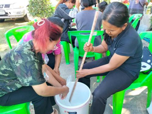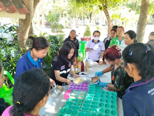 นอกจากนี้ ยังได้จัดกิจกรรมสาธิตฝึกอาชีพเพื่อเสริมสร้างรายได้และลดปัจจัยเสี่ยงในครัวเรือน ได้แก่ การทำน้ำยาล้างจาน น้ำยาซักผ้า และการทำสบู่ออร์แกนิกสมุนไพร ซึ่งเป็นอาชีพที่สามารถนำไปใช้จริงในชีวิตประจำวัน ลดรายจ่าย และต่อยอดสร้างรายได้เสริมให้แก่ครัวเรือนในชุมชน