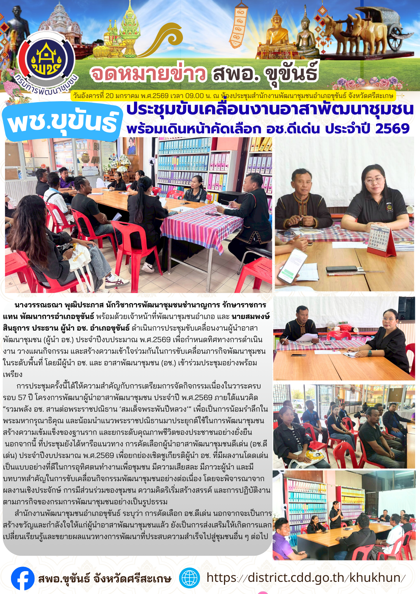 วันอังคารที่ 20 มกราคม พ.ศ.2569 เวลา 09.00 น. ณ ห้องประชุมสำนักงานพัฒนาชุมชนอำเภอขุขันธ์ จังหวัดศรีสะเกษ