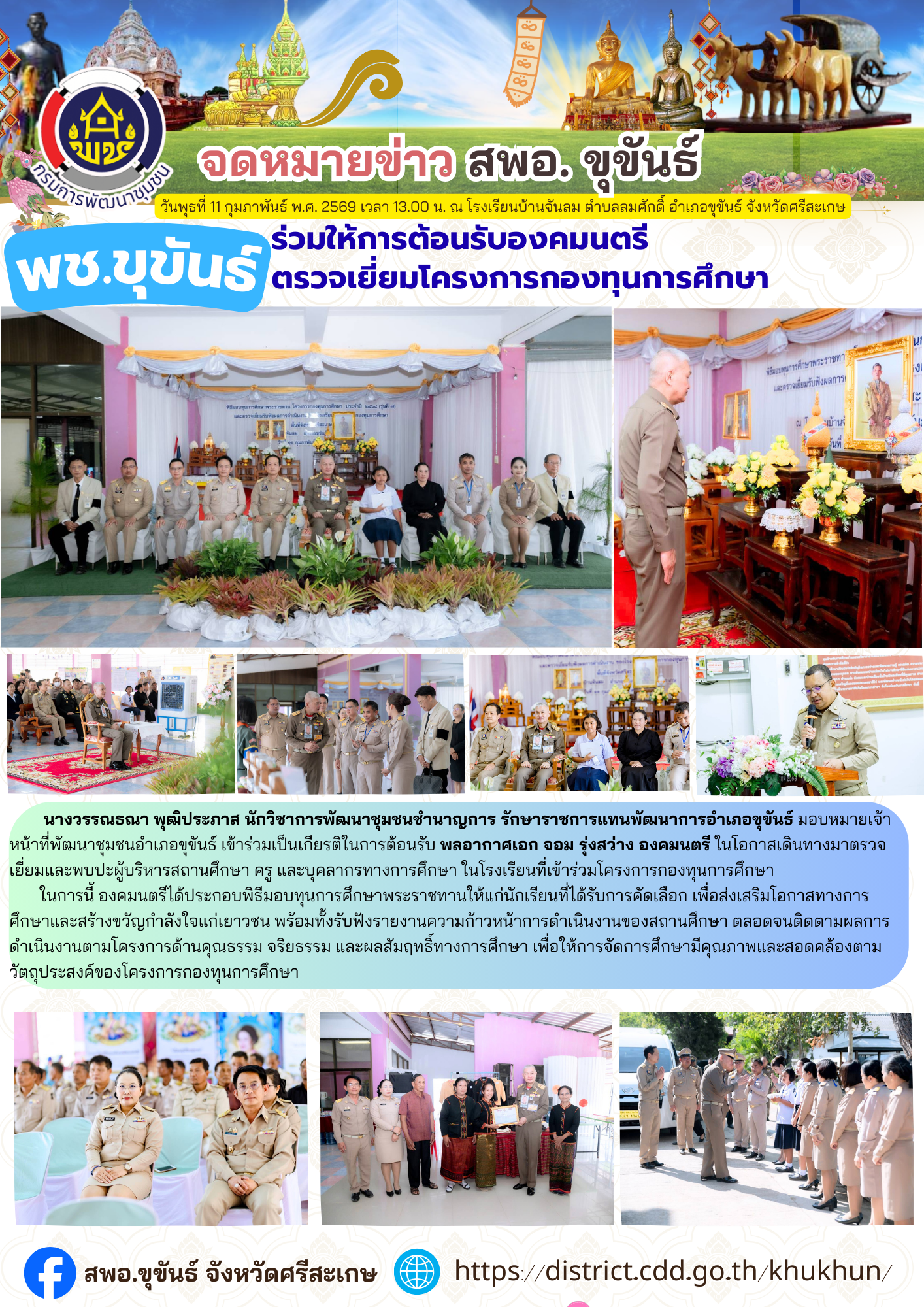 เมื่อวันพุธที่ 11 กุมภาพันธ์ พ.ศ. 2569 เวลา 13.00 น. ณ โรงเรียนบ้านจันลม ตำบลลมศักดิ์ อำเภอขุขันธ์ จังหวัดศรีสะเกษ