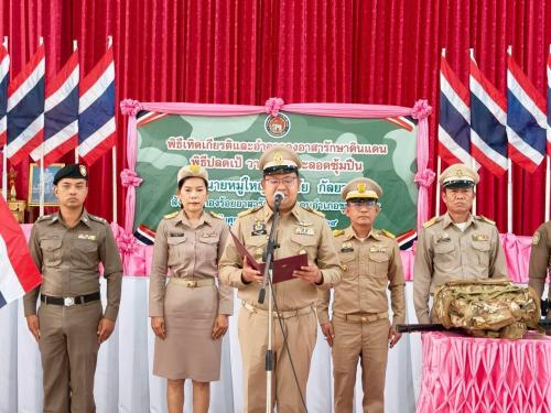 นายกองโท สุวรรณ เนตรเนติกุล นายอำเภอขุขันธ์ เป็นประธานในพิธีปลดเป้ วางปืน และลอดซุ้มปืน โดยกองร้อยอาสารักษาดินแดนอำเภอขุขันธที่ 5 จัดขึ้นให้กับสมาชิกกองอาสารักษาดินแดนอำเภอขุขันธ์ ที่ 5 ที่มีอายุครบหกสิบปีบริบูรณ์ ต้องพ้นจากการเป็นสมาชิกกองอาสารักษาดินแดน และปลดประจำกอง ประจำปี พ.ศ.2568 จำนวน 1 นาย เพื่อเชิดชูเกียรติแก่สมาชิกกองอาสารักษาดินแดน ที่ได้ทำคุณประโยชน์แก่กองอาสารักษาดินแดนและประเทศชาติ เนื่องจากตลอดช่วงเวลาที่ผ่านมาที่ได้ปฏิบัติหน้าที่ของกองอาสารักษาดินแดนด้วยความเสียสละ ทุ่มเท ทั้งแรงกาย แรงใจ และทำงานปฏิบัติหน้าที่เพื่อพี่น้องประชาชนและประเทศชาติด้วยความซื่อสัตย์ สุจริตเสมอมา