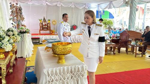 2. ประธานกล่าวถวายพระราชสดุดีสมเด็จพระนางเจ้าสิริกิติ์ พระบรมราชินีนาถ พระบรมราชชนนีพันปีหลวง หน้าพระบรมฉายาลักษณ์