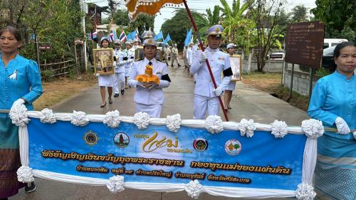 นายสุวรรณ เนตรเนติกุล นายอำเภอขุขันธ์ เป็นประธานในพิธีอัญเชิญเงินพระราชทานขวัญถุงกองทุนแม่ของแผ่นดิน ประจำปี พ.ศ.2568 ณ หมู่บ้านหนองสิม หมู่ที่ 19 ตำบลปรือใหญ่ อำเภอขุขันธ์ จังหวัดศรีสะเกษ ในการนี้ นางสาวภัทร์พิชชา ทองเทพ พัฒนาการอำเภอขุขันธ์ พร้อมด้วยเจ้าหน้าที่พัฒนาชุมชนอำเภอ ร่วมกับนางสุจิตร์ สัมพุทธานนท์ ประธานกองทุนแม่ของแผ่นดินบ้านหนองสิม กลุ่มสมาชิกกองทุนแม่ของแผ่นดินบ้านหนองสิม รวมทั้งภาคีเครือข่าย ส่วนราชการและองค์กรปกครองส่วนท้องถิ่น ผู้นำชุมชน รวมถึงประชาชนในพื้นที่ เข้าร่วมขบวนพิธีอัญเชิญเงินพระราชทานขวัญถุงกองทุนแม่ฯ โดยมีวัตถุประสงค์ เพื่อขยายพลังแห่งความดีของคนในหมู่บ้านให้กว้างขวางขึ้น สร้างกระบวนการในหมู่บ้านด้านความคิด ความรู้ การแลกเปลี่ยน การรวมกลุ่มและความตื่นตัว เพื่อร่วมแก้ไขปัญหาของหมู่บ้าน โดยเฉพาะอย่างยิ่งปัญหายาเสพติด การได้รับแลกเงินขวัญถุงฯ ครั้งนี้ยังเป็นการสร้างขวัญ กำลังใจและความเป็นสิริมงคลแก่ครอบครัวของสมาชิกกองทุนรวมถึงผู้มาร่วมงานที่ได้รับแลกเงินขวัญถุงในครั้งนี้ด้วย ซึ่งมีพิธีการดำเนินกิจกรรมดังนี้