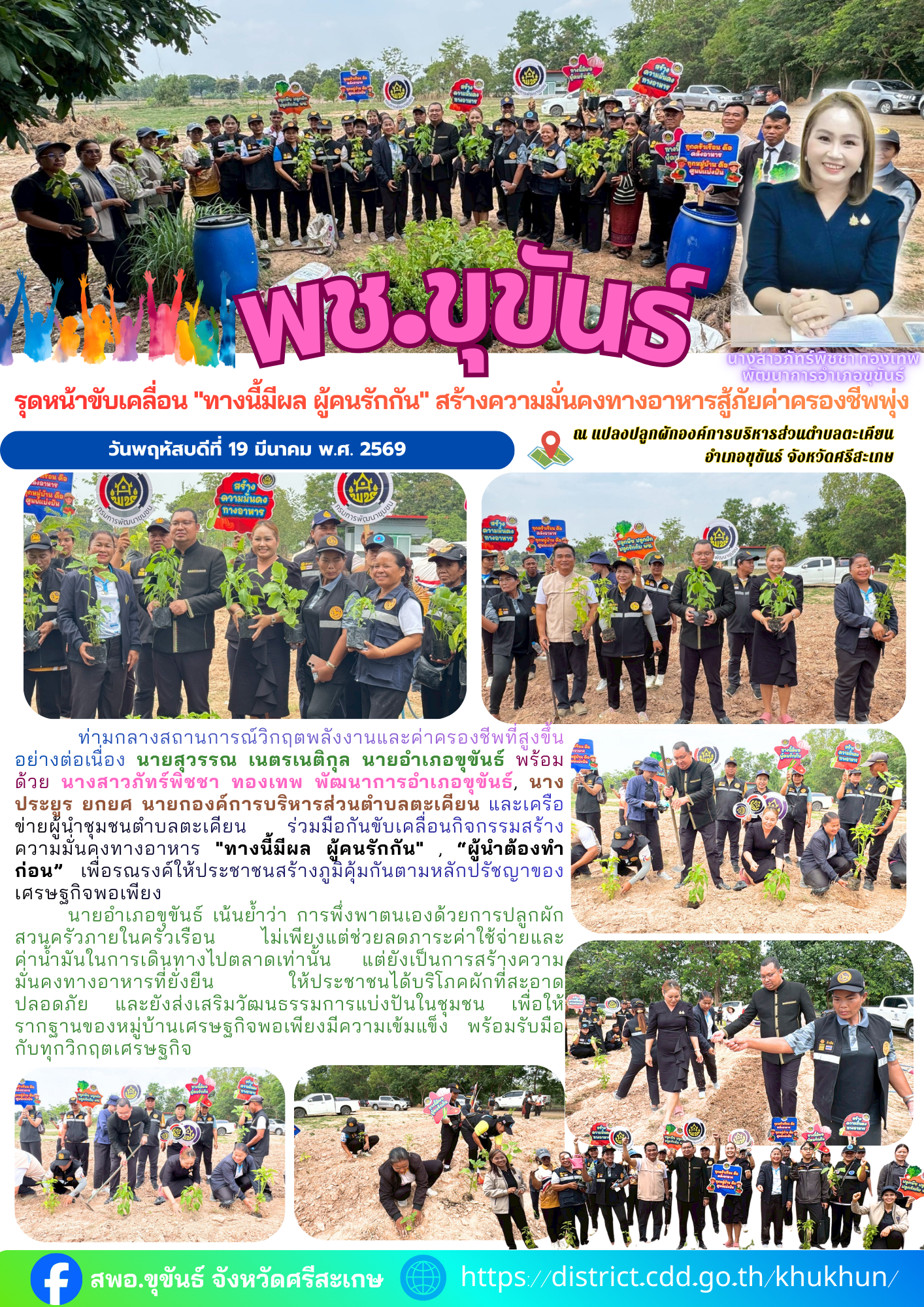 วันพฤหัสบดีที่ 19 มีนาคม พ.ศ. 2569 ณ แปลงปลูกผักองค์การบริหารส่วนตำบลตะเคียน อำเภอขุขันธ์ จังหวัดศรีสะเกษ