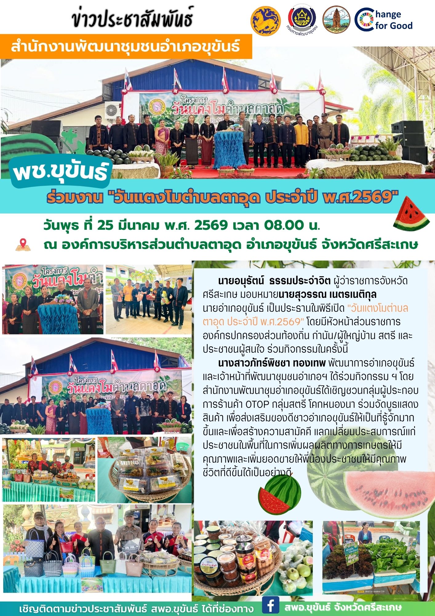 พช.ขุขันธ์ ร่วมเป็นเกียรติพิธีเปิดโครงการ "วันแตงโมตำบลตาอุด ประจำปี พ.ศ.2569"