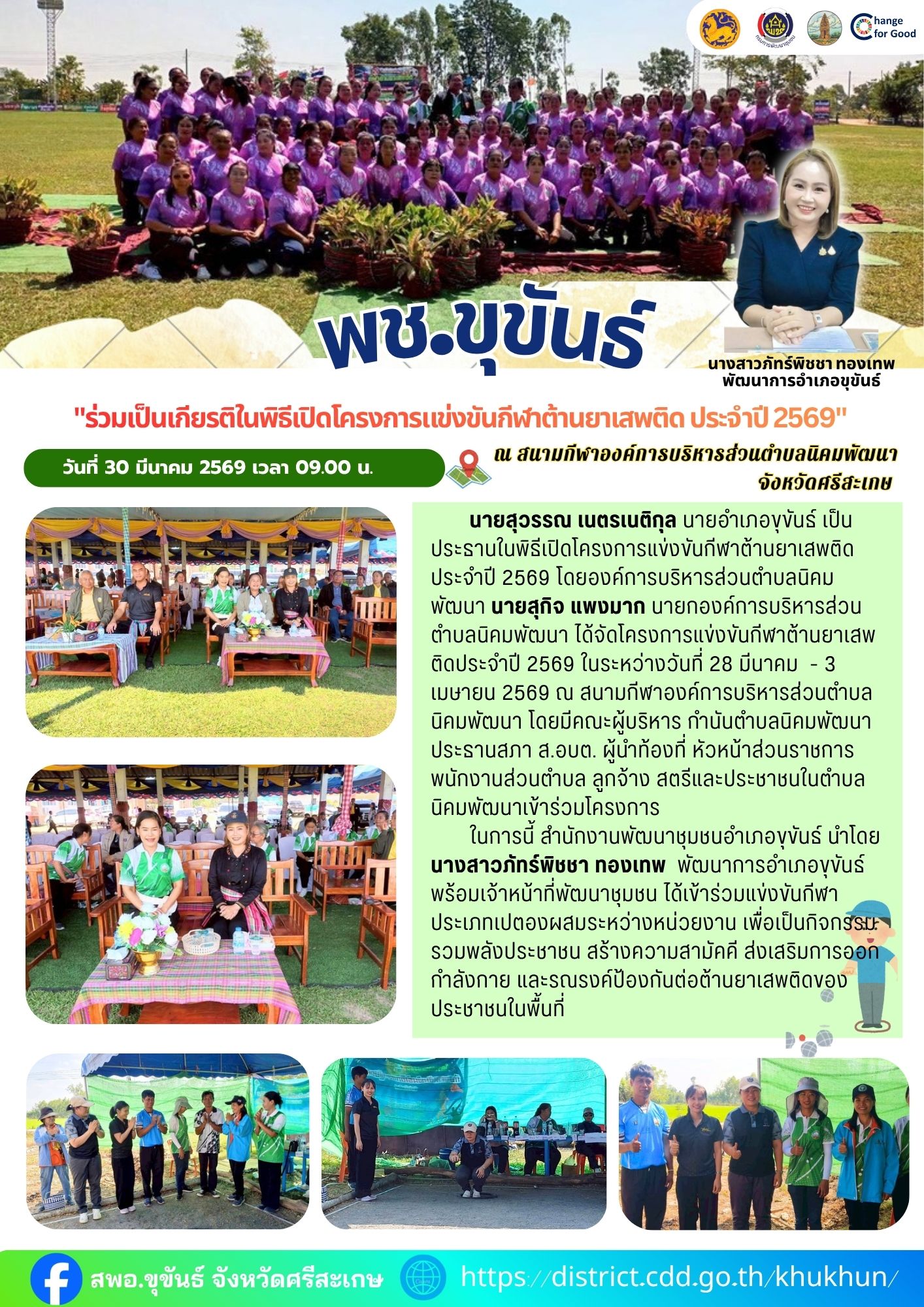 พช.ขุขันธ์ ร่วมเป็นเกียรติในพิธีเปิดโครงการแข่งขันกีฬาต้านยาเสพติด ประจำปี 2569