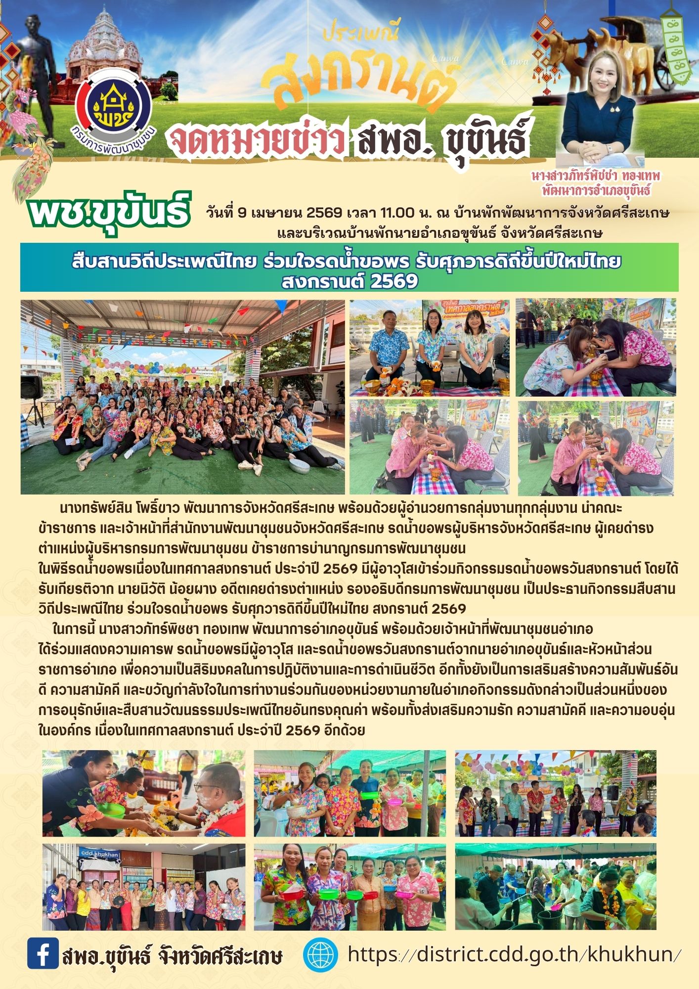 พช.ขุขันธ์ สืบสานวิถีประเพณีไทย ร่วมใจรดน้ำขอพร รับศุภวารดิถีขึ้นปีใหม่ไทย สงกรานต์ 2569